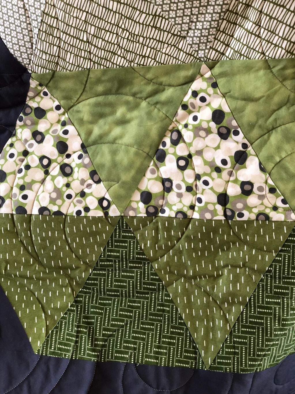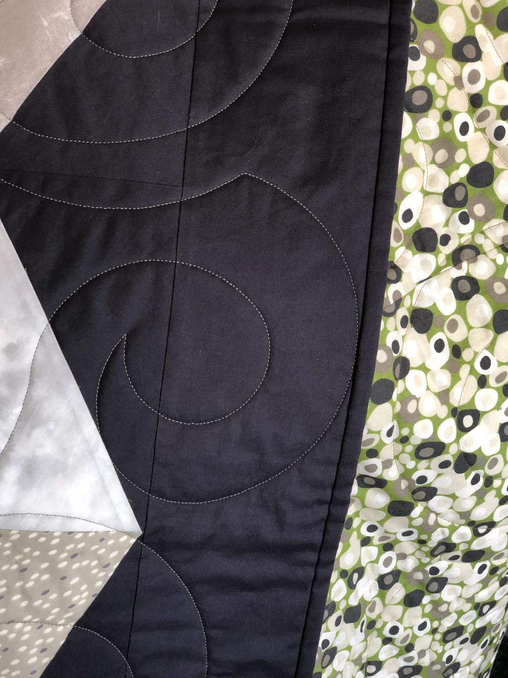 All fabrics are pre-washed to minimize shrinkage. pieces are machine sewn and then the final quilted design is either done by myself or given to a professional longarm quilter for finishing.